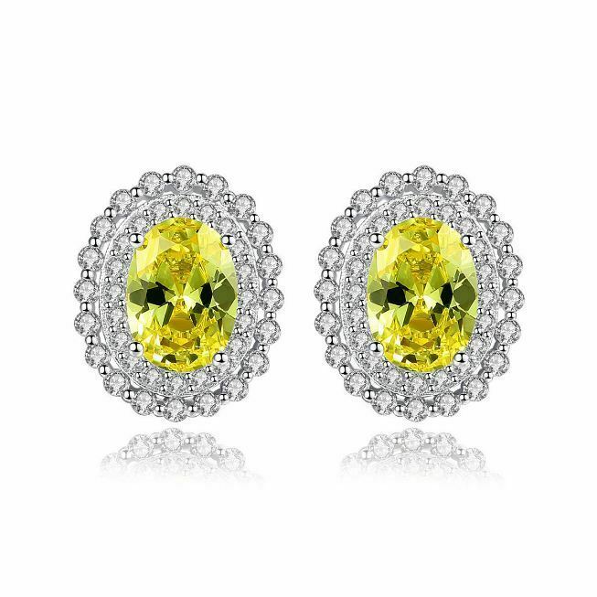 4Ct Ovale Brillant Coupe Citrine Jaune Fleur Clou Boucles 14K or Blanc Finition
