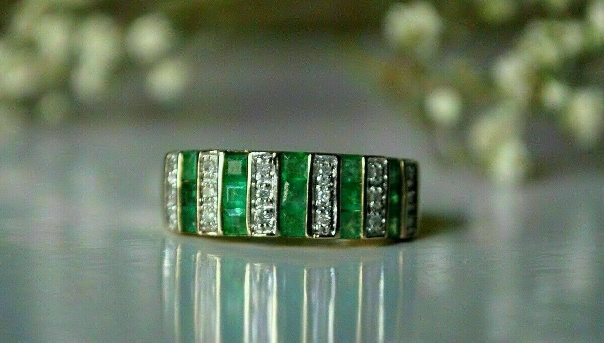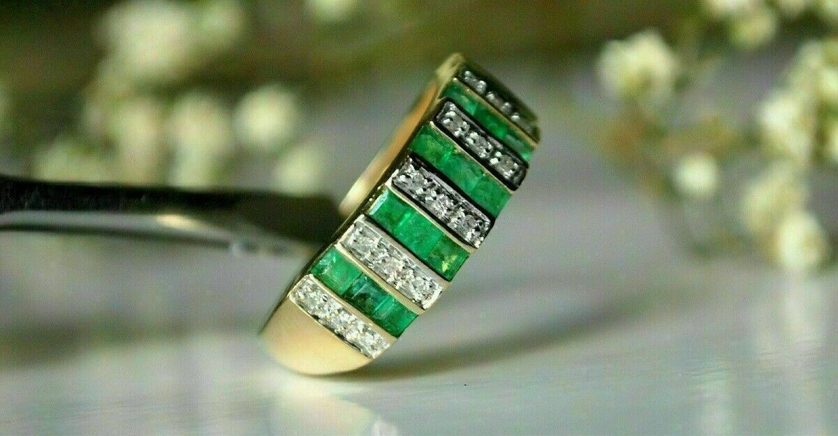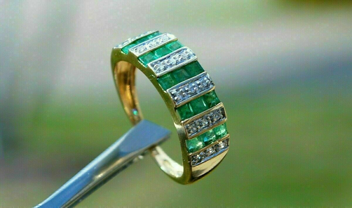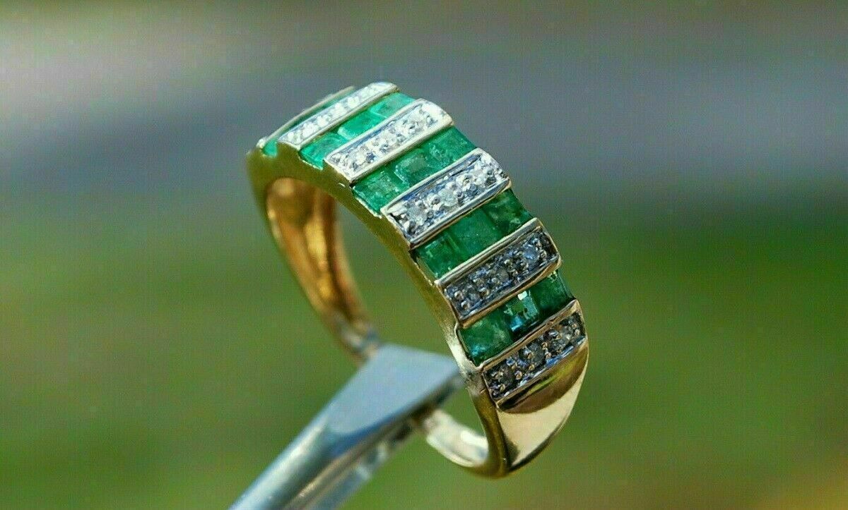 2Ct Corte Princesa Esmeralda Verde/Diamante Alianza 14K Acabado de Oro Amarillo