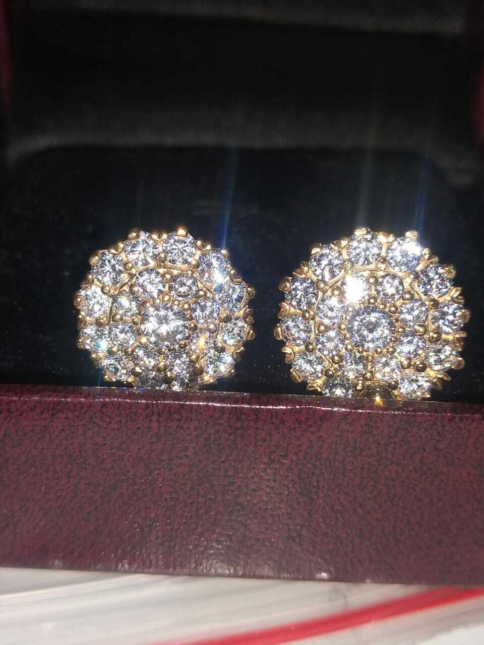 1.50Ct Corte Redondo D/VVS1 Diamante Racimo Dormilonas 14K Oro Amarillo Acabado