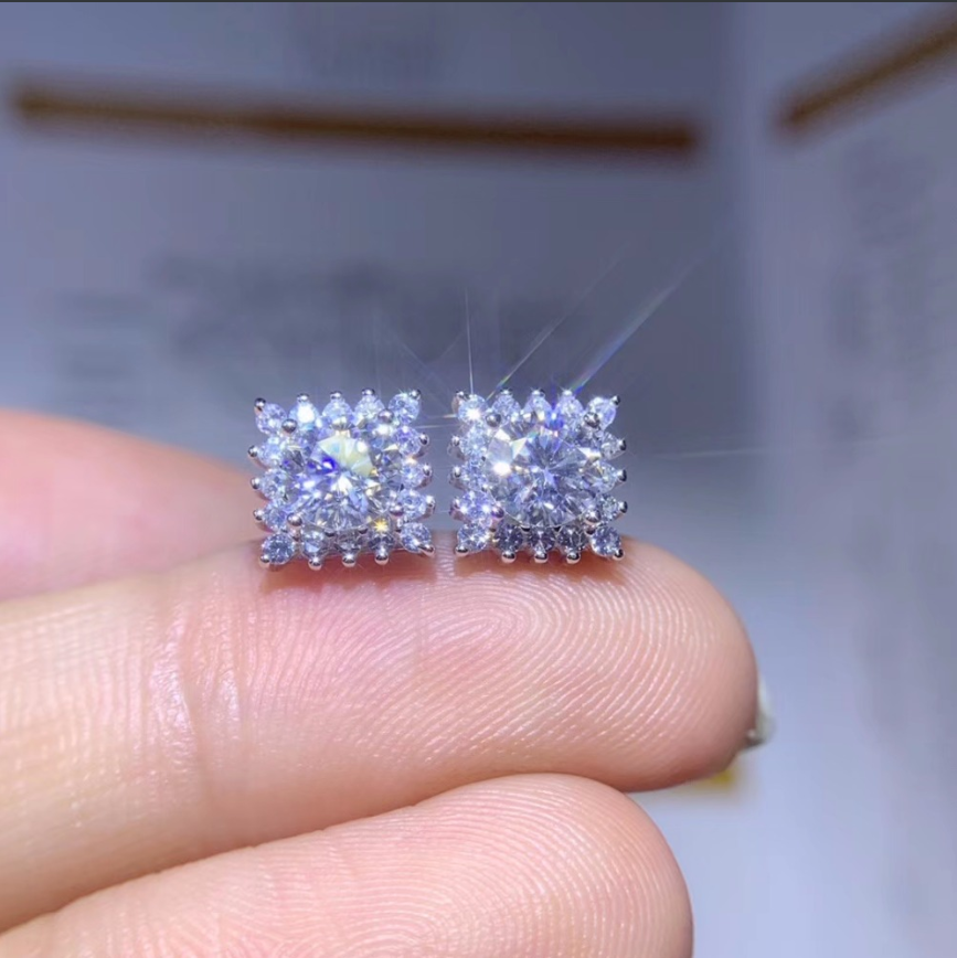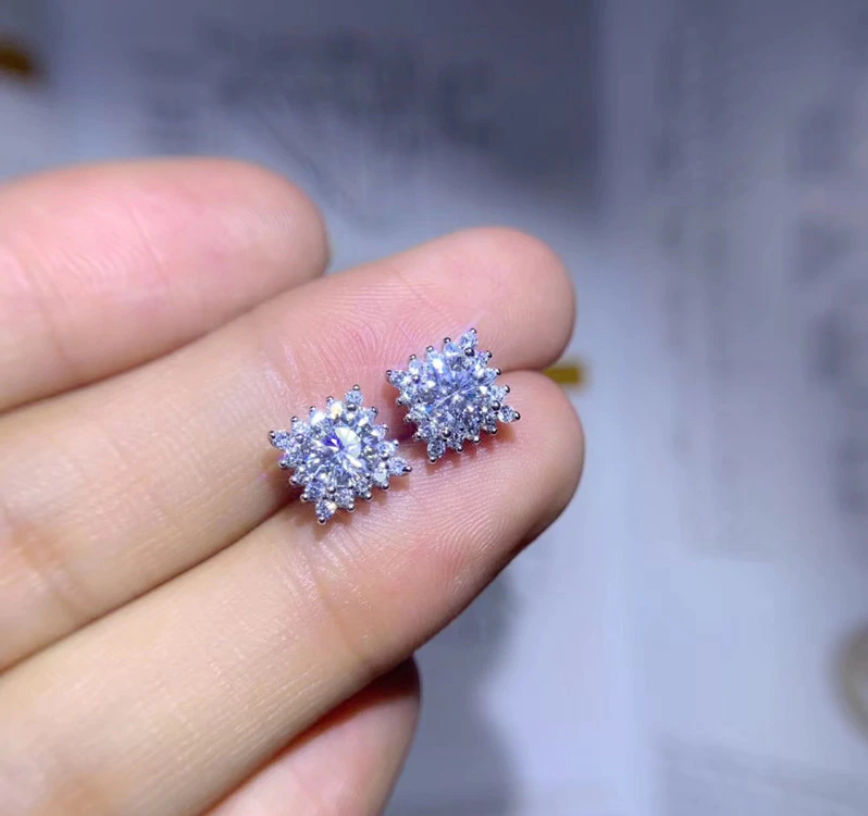 1.50Ct Corte Redondo Moissanita Halo Dormilonas de Rosca 14K Oro Blanco Acabado