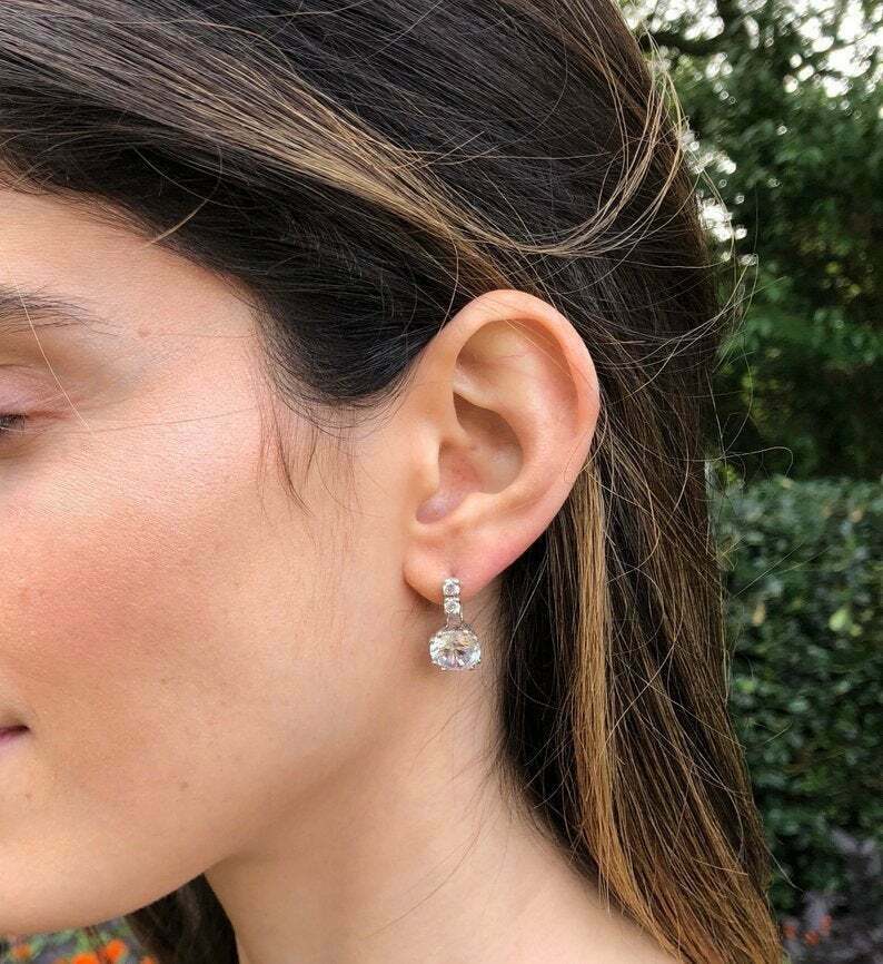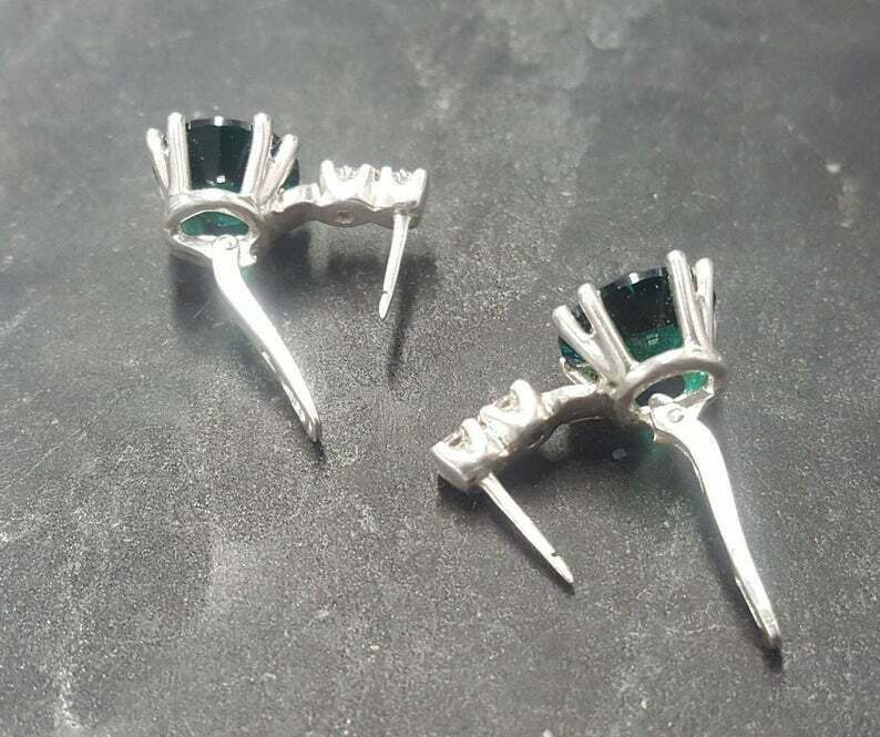 4Ct Atemberaubend Rund Schliff Grün Smaragd Solitaire Creolen 14K Weiß Gold Über