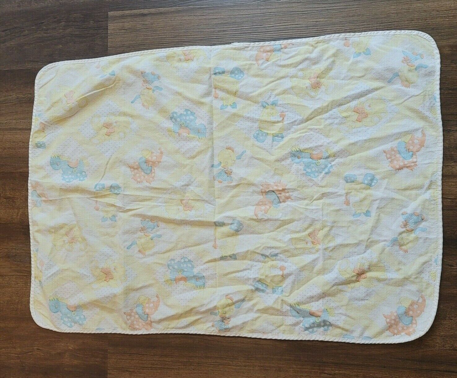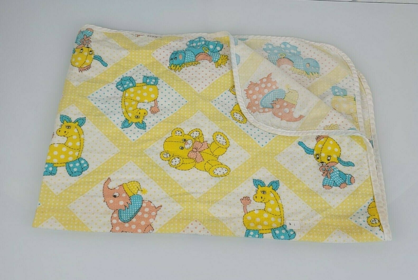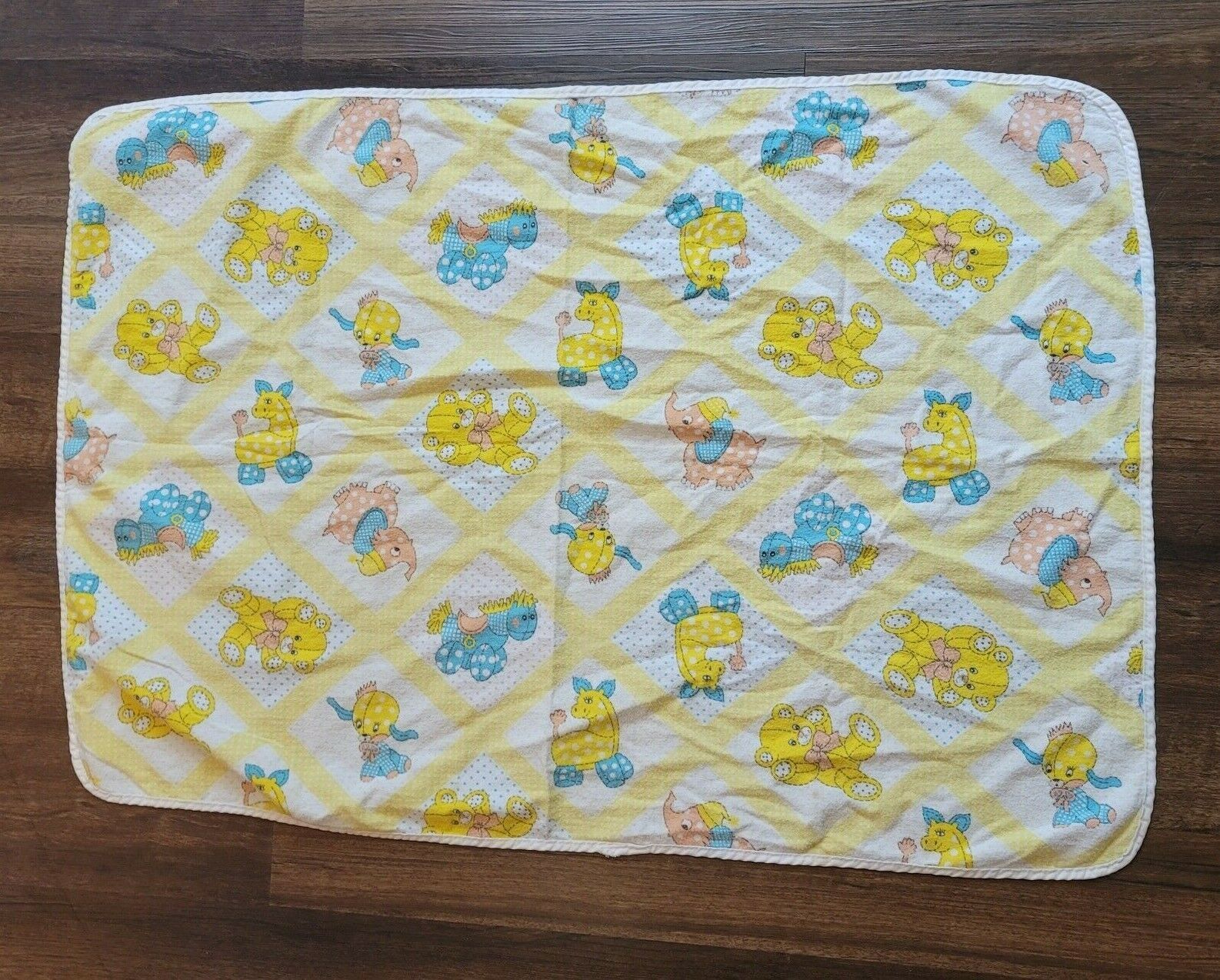 Vintage Baby Hospital Receiving Blanket Flannel Cotton Yellow Animal Bear Dog