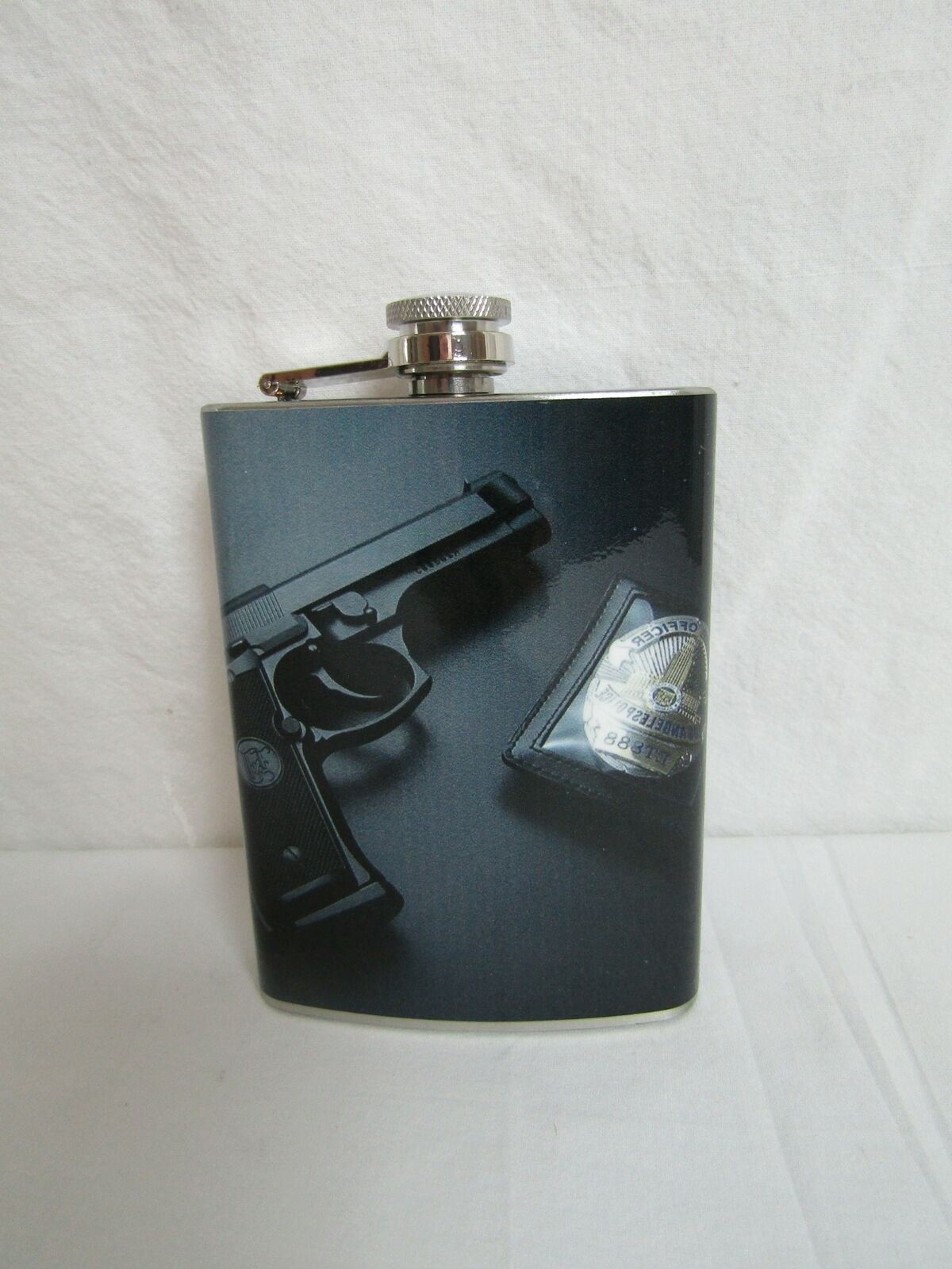 Police Gun and Badge Thin Blue Line Stainless Steel 8oz. Hip Flask FB17P6B