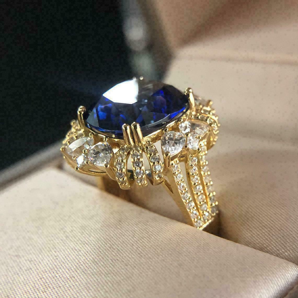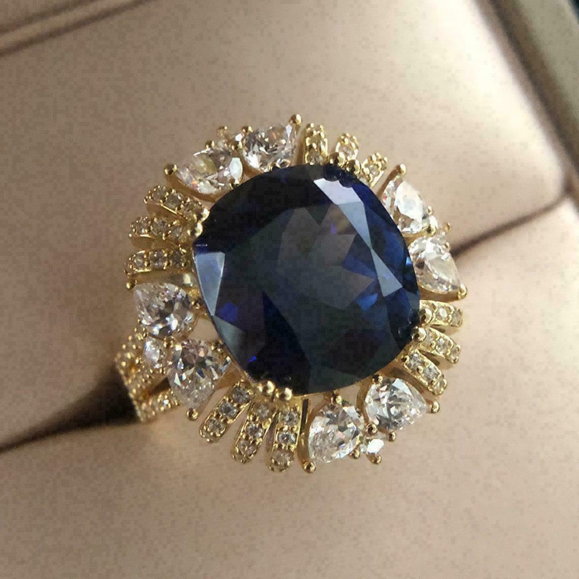 3Ct Cuscino Taglio Zaffiro e Diamante Donna and similar items