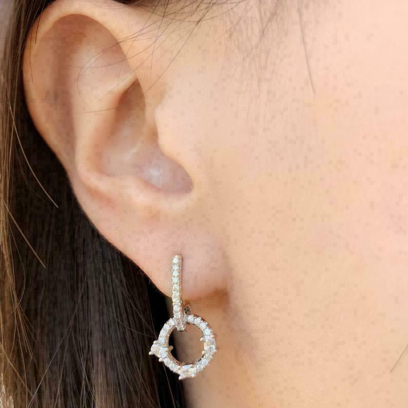 2Ct Coupe Ronde VVS1 / D Diamant Goutte / Pendantes Cercle Boucles 14K Blanc Or