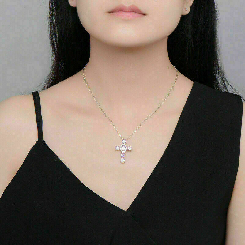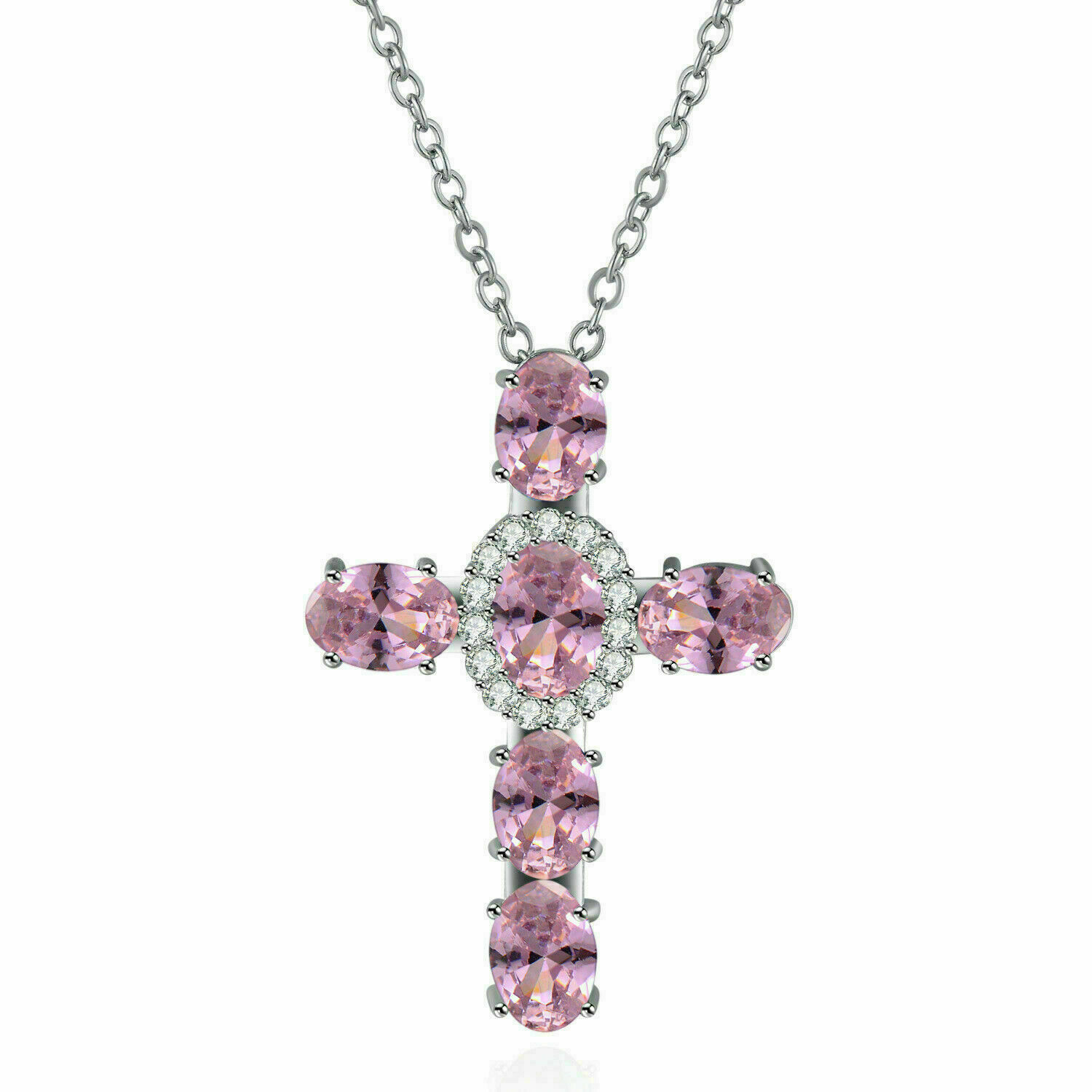 2.50Ct Corte Ovalado Zafiro Diamante Cruz Pendant14K Oro Blanco Acabado Libre