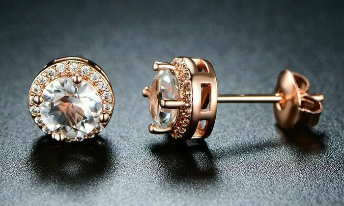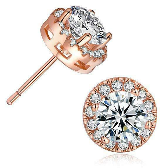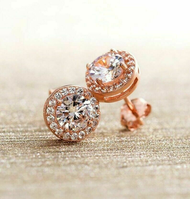 4.20Ct Corte Redondo VVS1 Diamante Halo Dormilonas 14K Acabado de Oro Amarillo