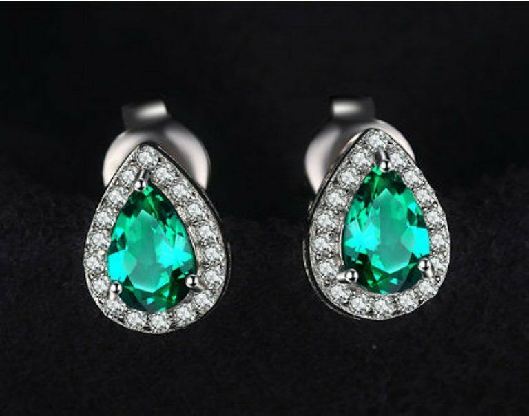4.20Ct Tropfenschliff Grün Smaragd Halo Ohrstecker 14K Weißgold Finish