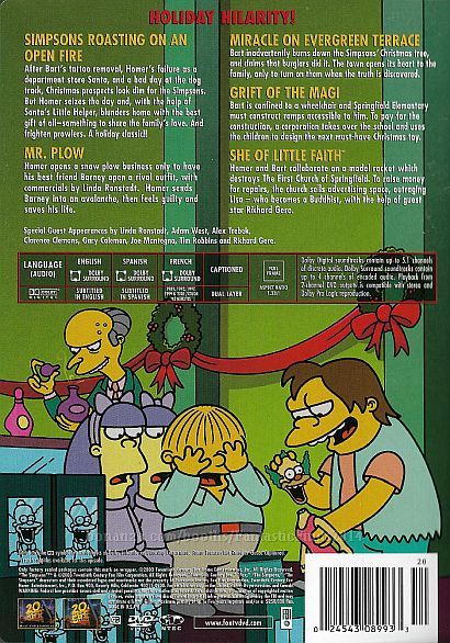 Plot: This hilarious Christmas themed collection features 5 classic episodes: Mr. Plow, Miracle On Evergreen Terrace, Grift Of The Magi, She Of Little Faith Simpsons Roasting On An Open Fire. 082121-082121P-DVD3