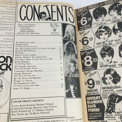Hit Parader Magazine April 1975 Keith Richard, Ray Davies & Johnny Winter