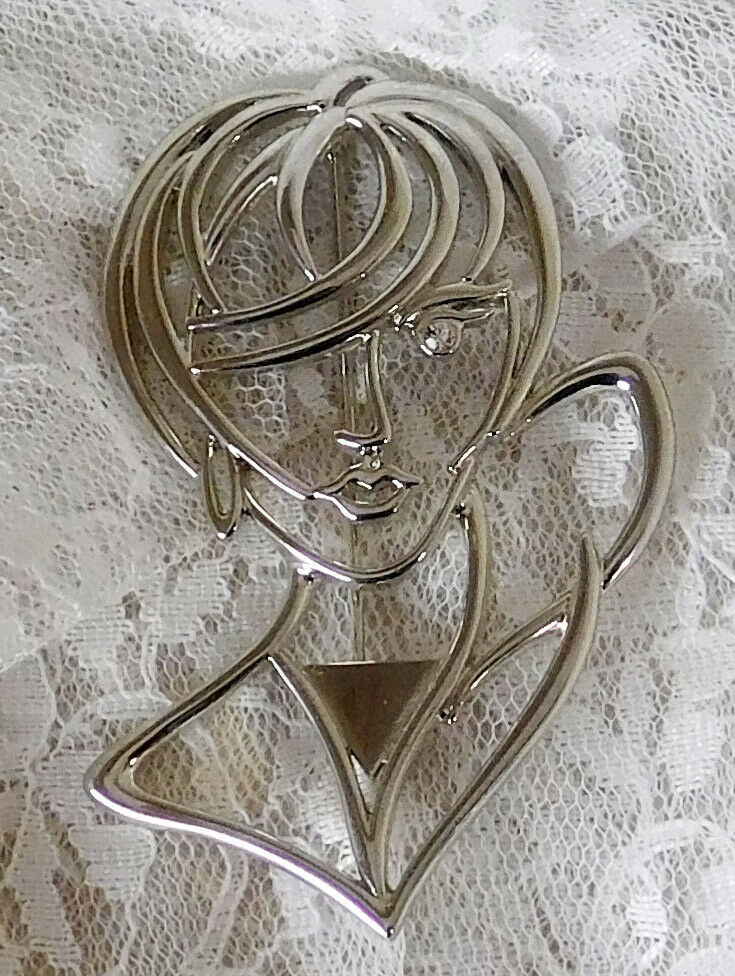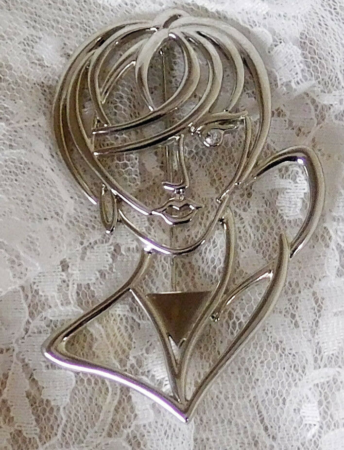Modern Woman Brooch Maker's Mark "JJ" 3 1/4" tall x 2 1/2" wide Beautiful
