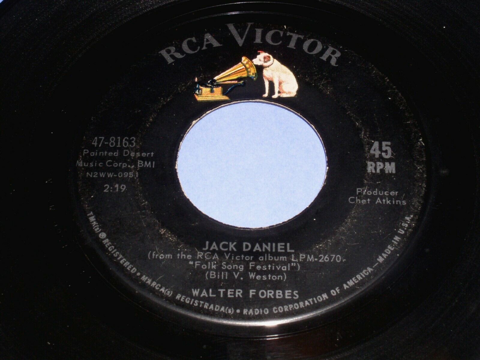This is a vintage 45 rpm phonograph record by Walter Forbes, entitled, "Jack Daniel". Flipside: "Spring Song". Record label: RCA 47-8163.
