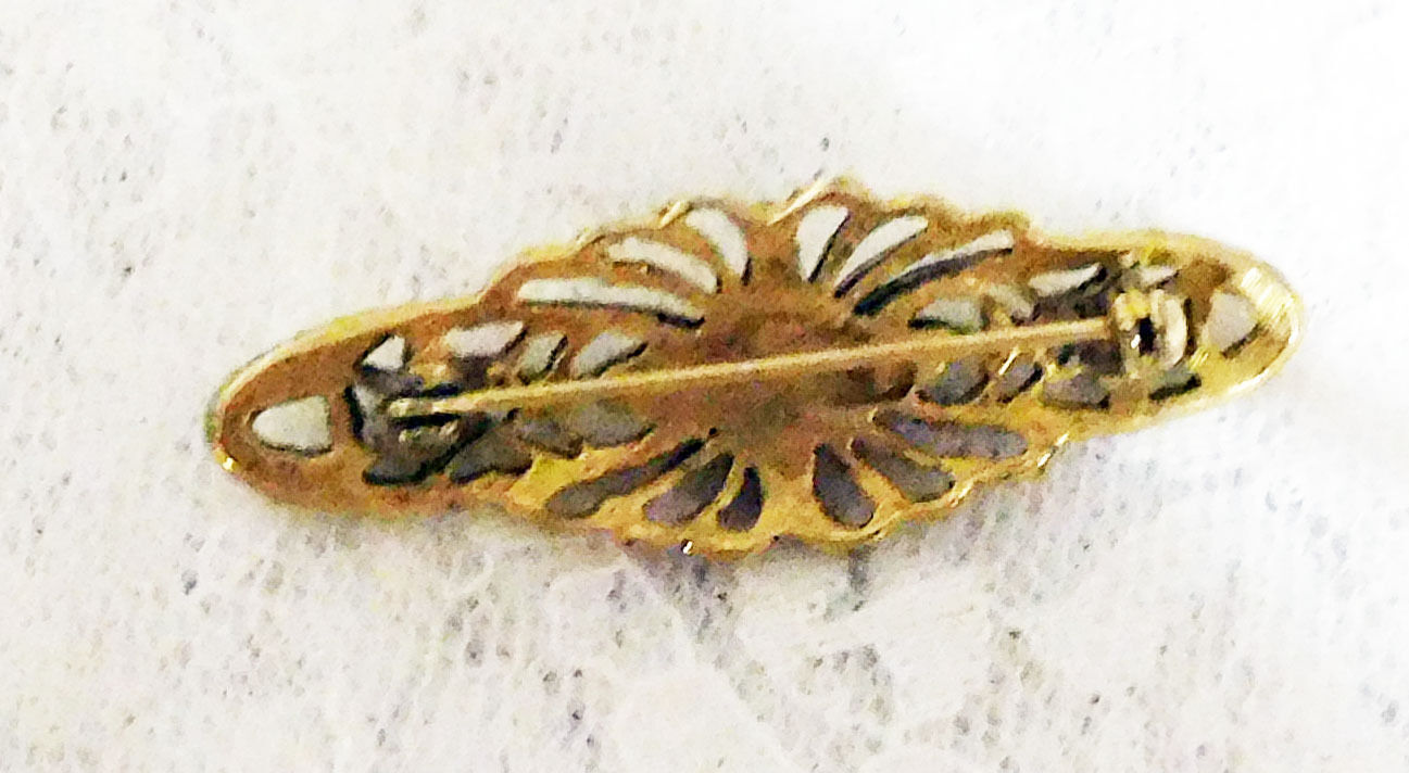 Vintage Brooch - Gold Colored with Faux Pearl Center - 2 1/8" Long - Very Pretty! Excellent condition - See photos for further description