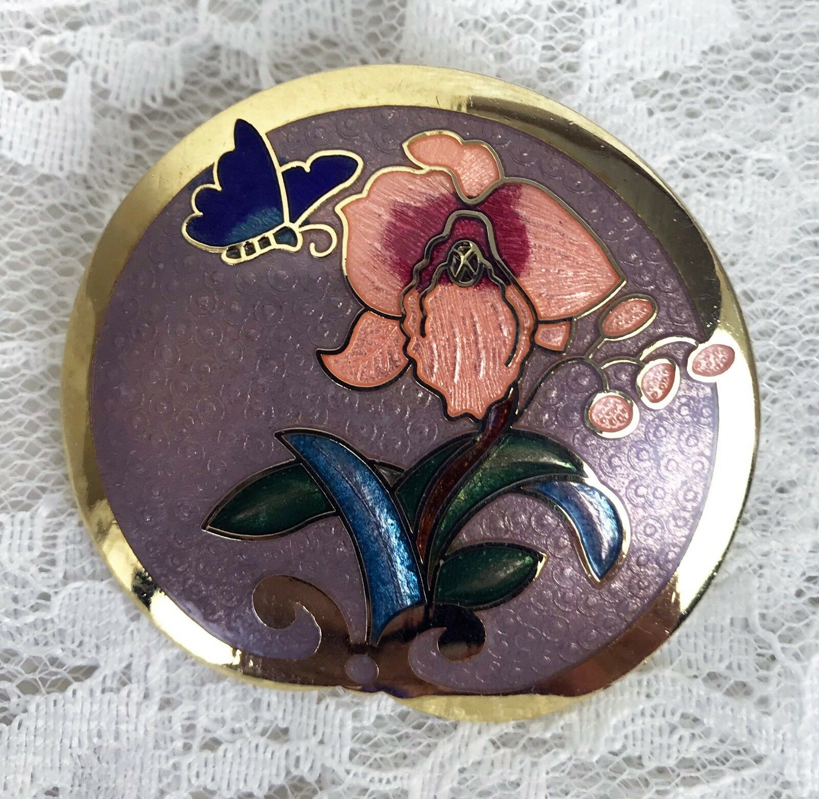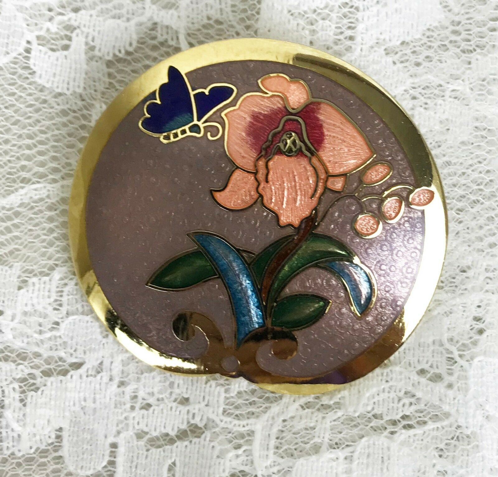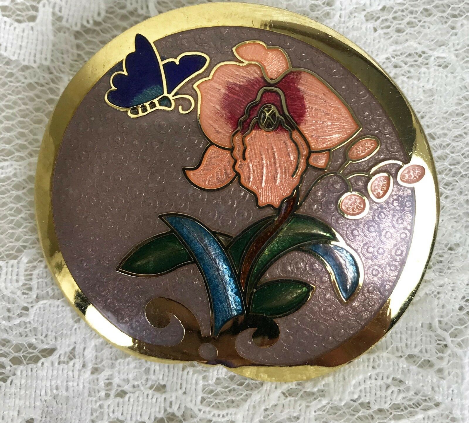 Vintage SITI Scarf Clip Goldton Enamel Flower Butterfly - Approx 2" Wide. Excellent Used Condition - See Photos for further Description.