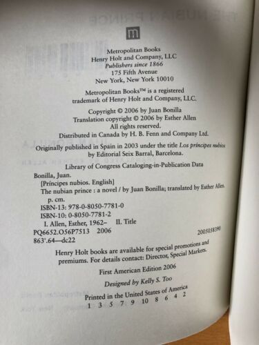 THE NUBIAN PRINCE by JUAN BONILLA - FIRST EDITION - HARDCOVER