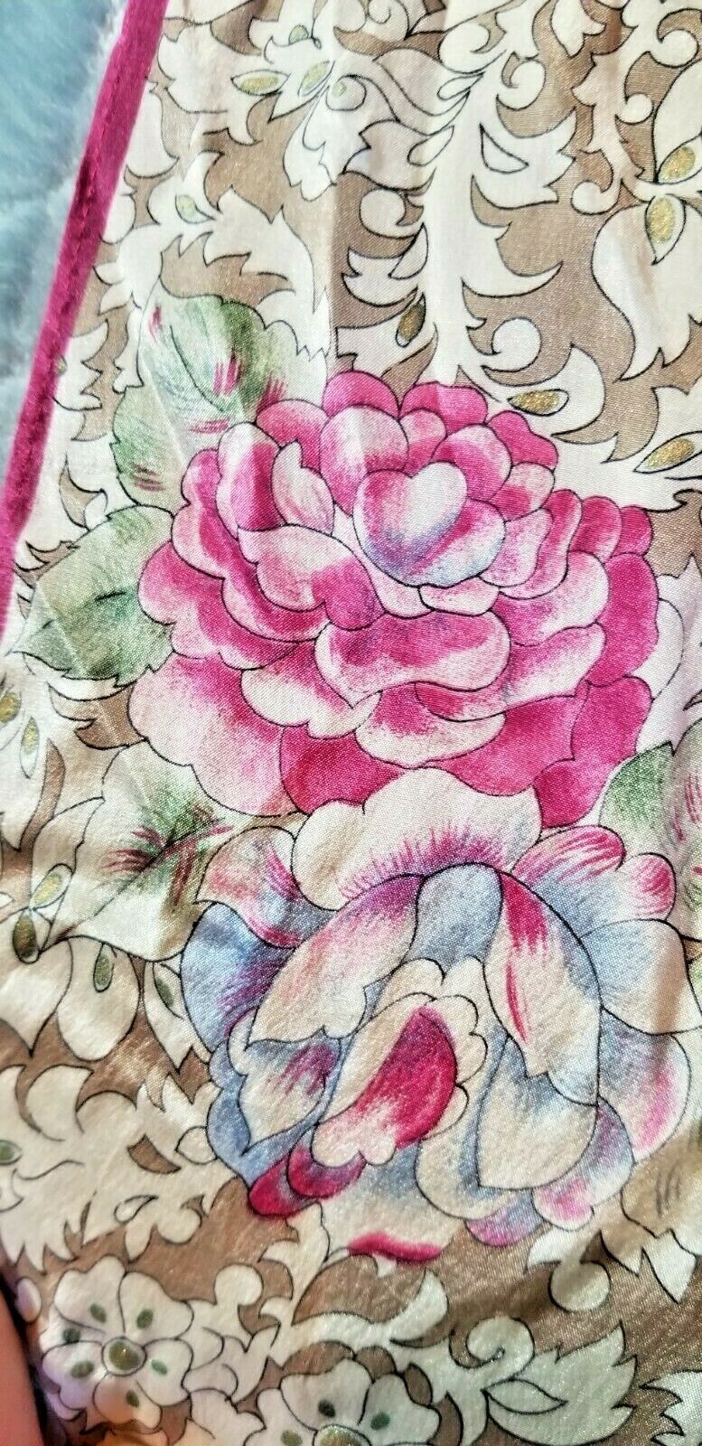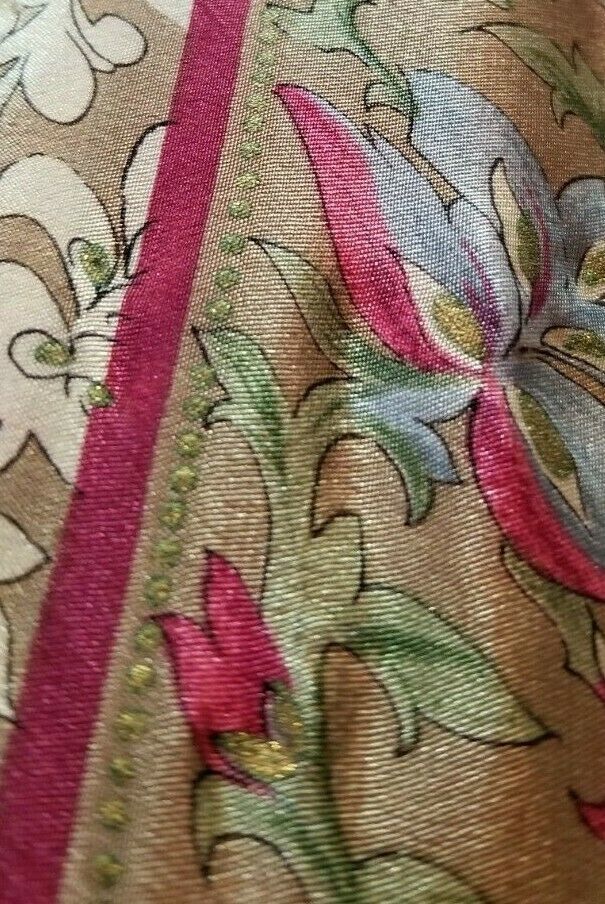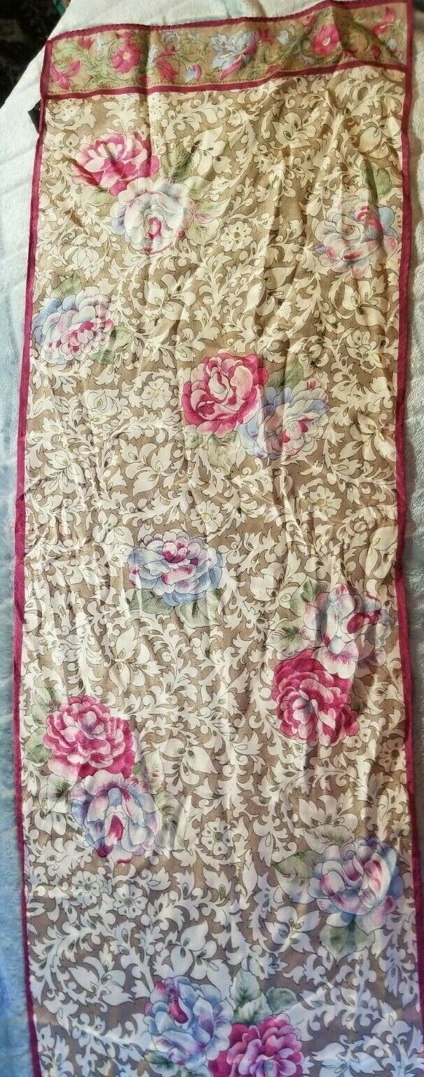 Vintage Specialty House Scarf 100% Silk Japan Burgandy/Tan Flowers Gold Shimmer U1