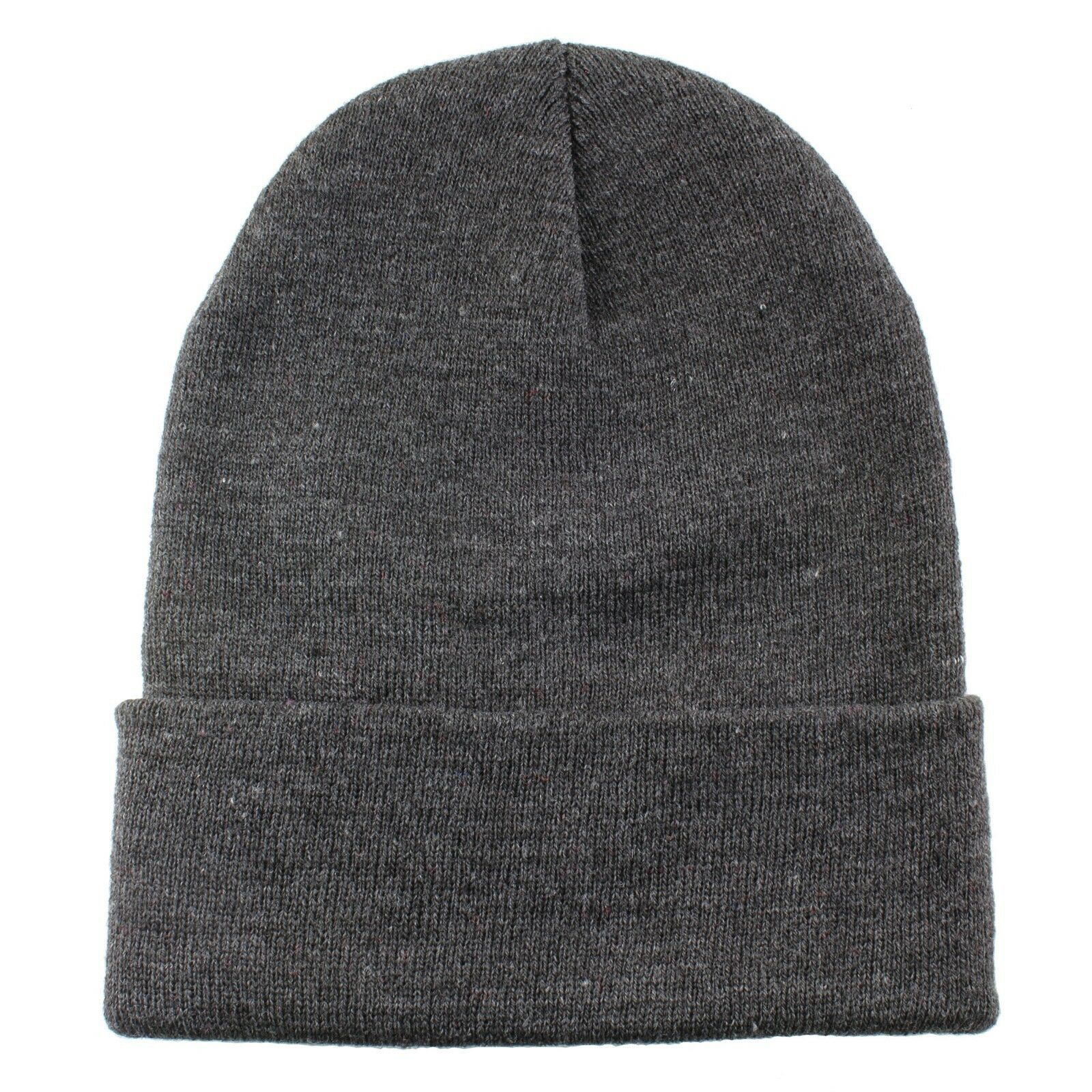 Dark Gray Unisex Beanie Hat Plain Warm Knit Cuff Skull Ski Cap