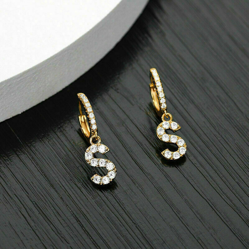 1.50Ct Diamante Taglio Rotondo Lettera " S " Goccia Orecchini 14K Oro Giallo