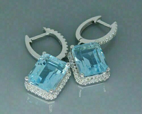 5Ct Émeraude Coupe Moissanite Drop&dangle Halo Boucles D'Oreilles 14K Blanc Or