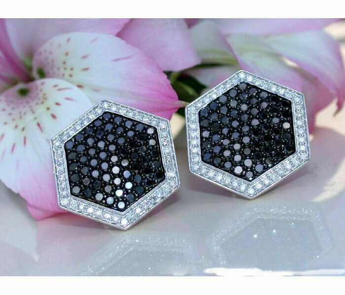 3Ct Corte Redondo Blanco y Negro Diamante en Racimo Pendientes 14K Acabado Oro