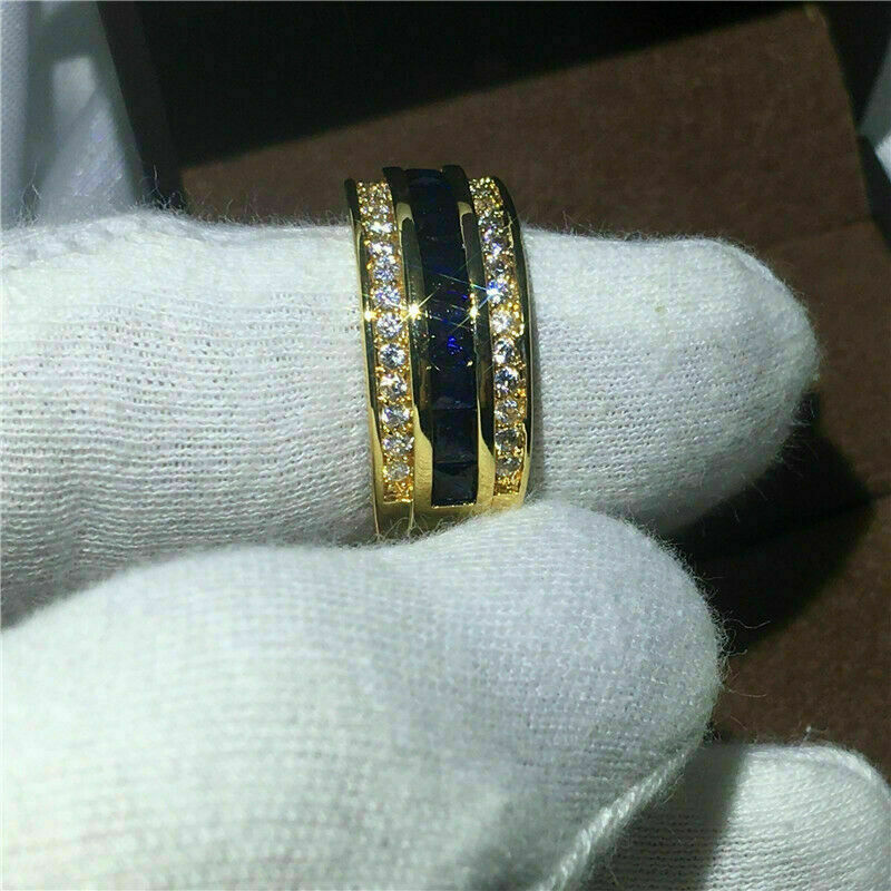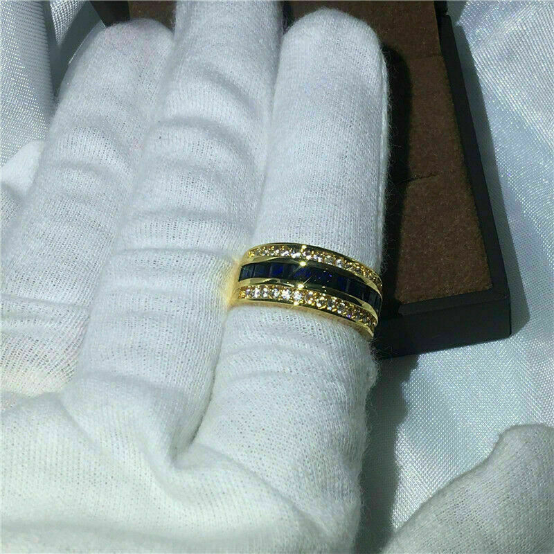 3Ct Taglio Princess Zaffiro e Diamante Uomo Fede Nuziale 14K Finitura Oro Giallo