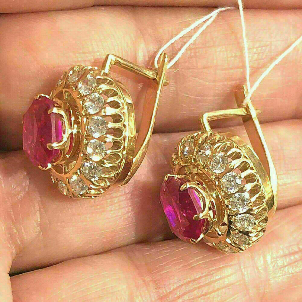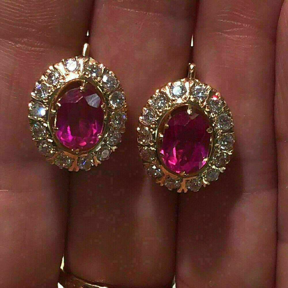 4Ct Oval Geschnitten Rosa Rubin Diamant Halo Drop dangle Ohrringe 14K Gelb Gold