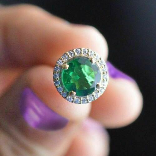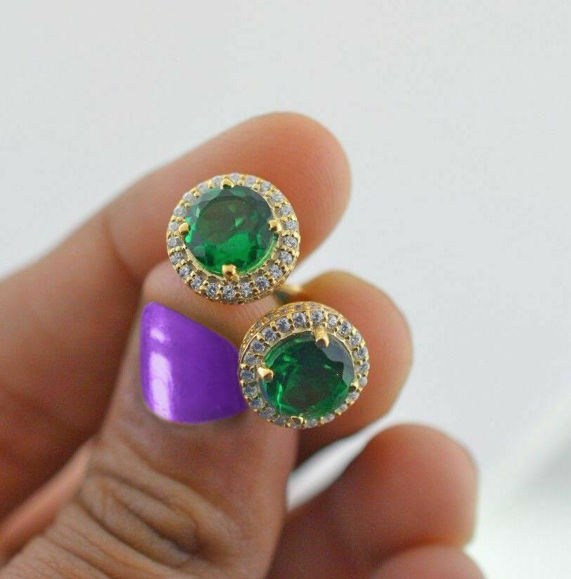 2.00Ct Grün Smaragd Halo Rund Schliff Ohrstecker IN 14K Gelbgold Finish