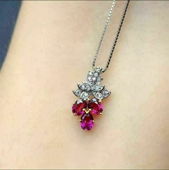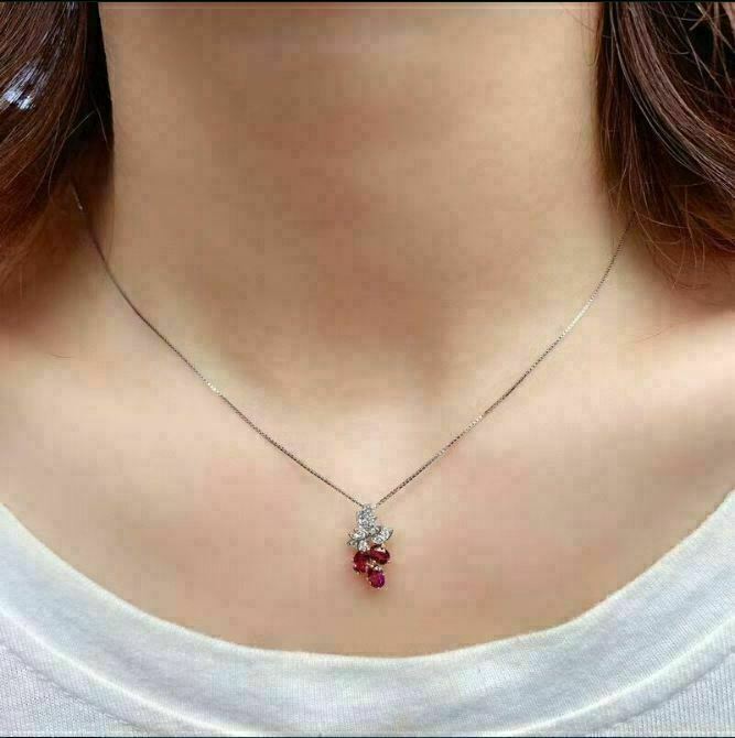 2.25Ct Taglio Ovale Rosso Rubino Halo Grappolo Ciondolo 14K Bianco Finitura Oro