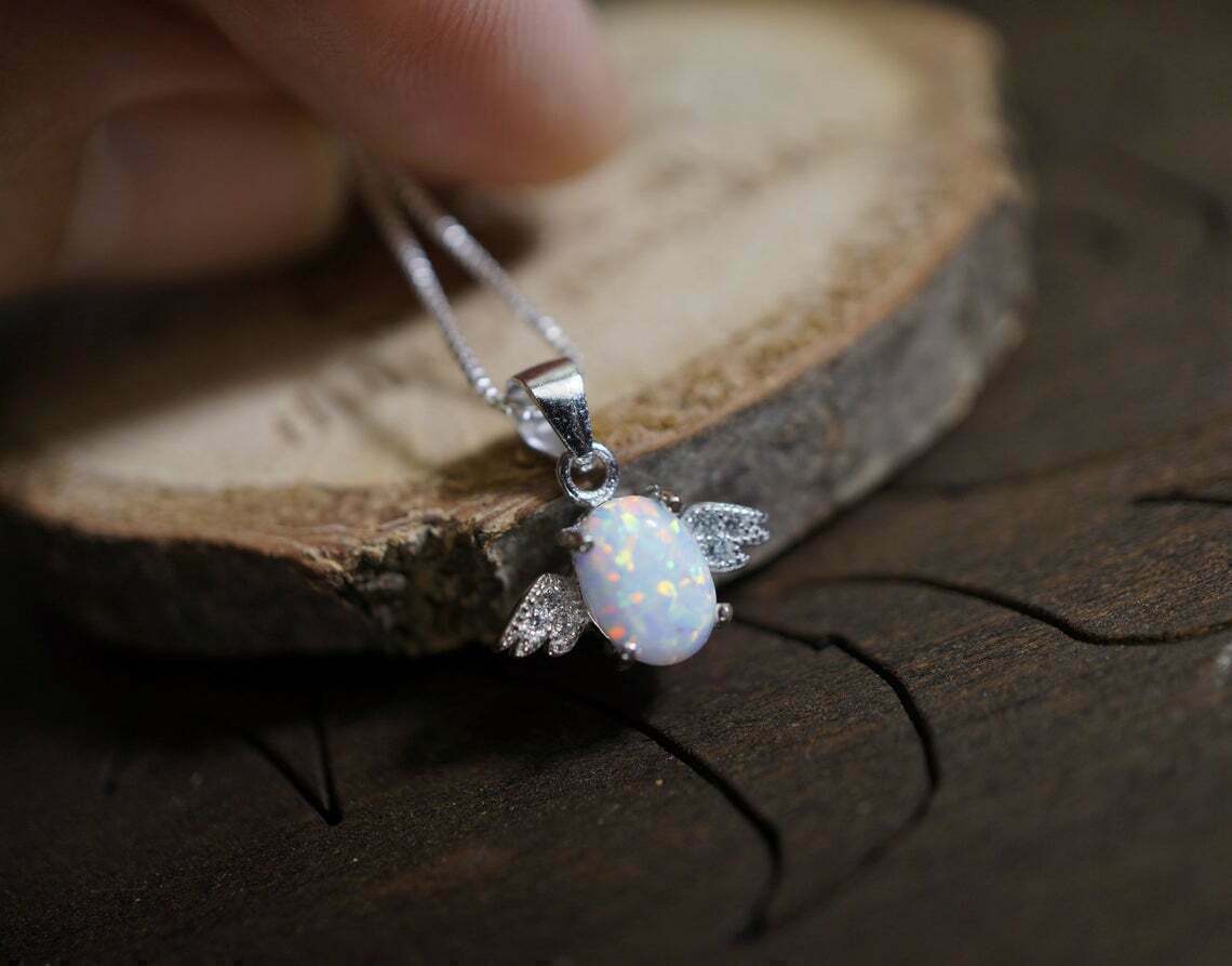2Ct Coupe Ovale Feu Opale Diamant Solitaire Pendant14K or Blanc Finition Gratuit