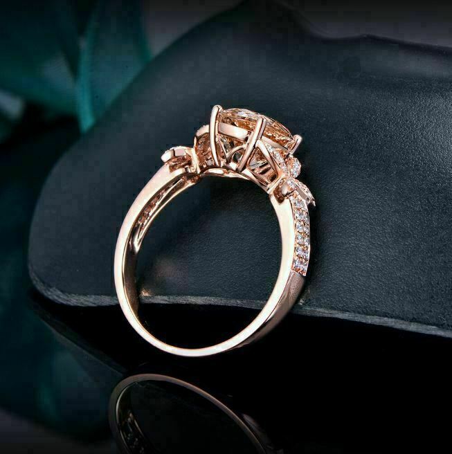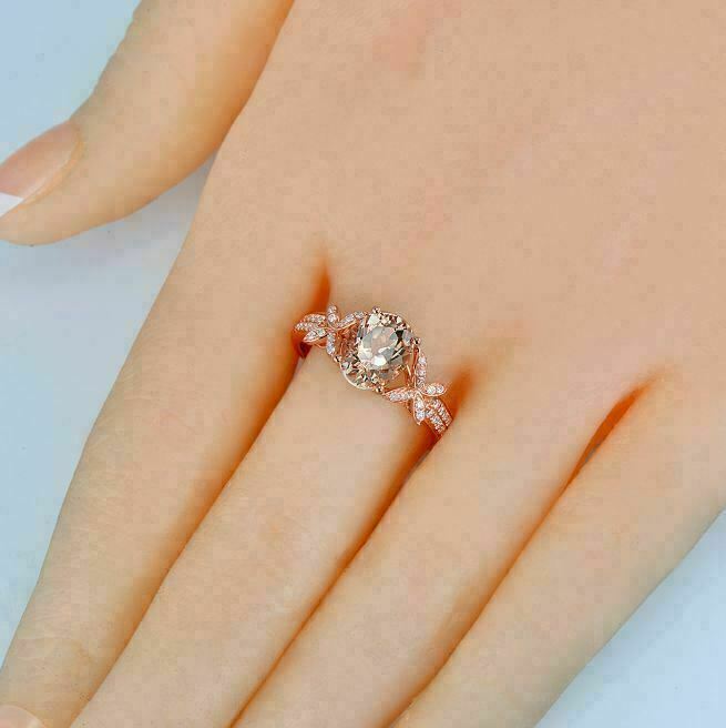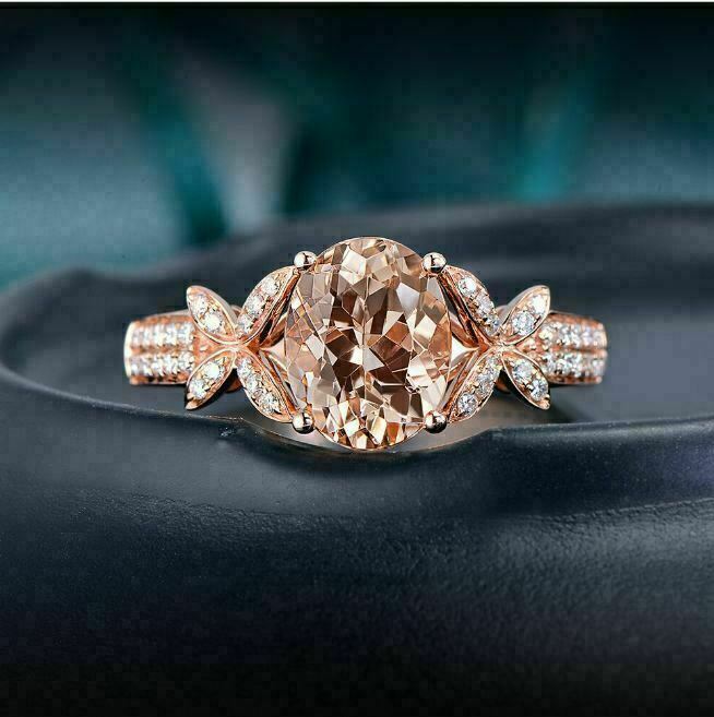 2Ct Corte Ovalado Melocotón Morganita Compromiso Solitario Anillo 14K Oro Rosa