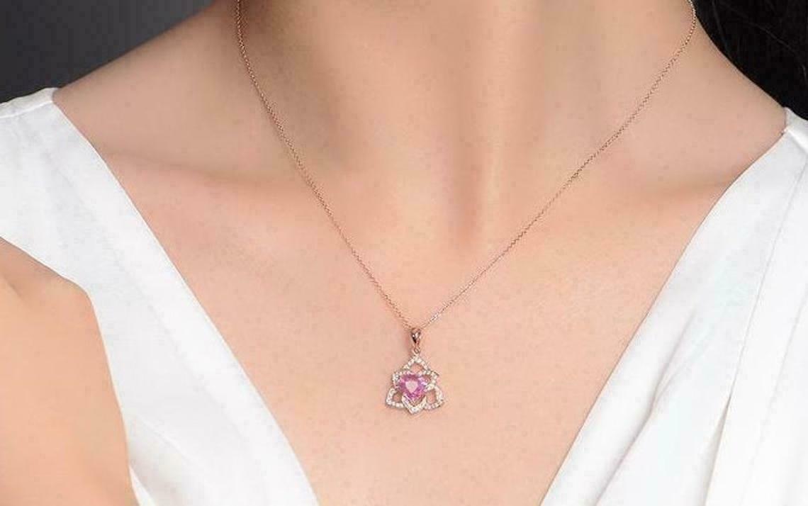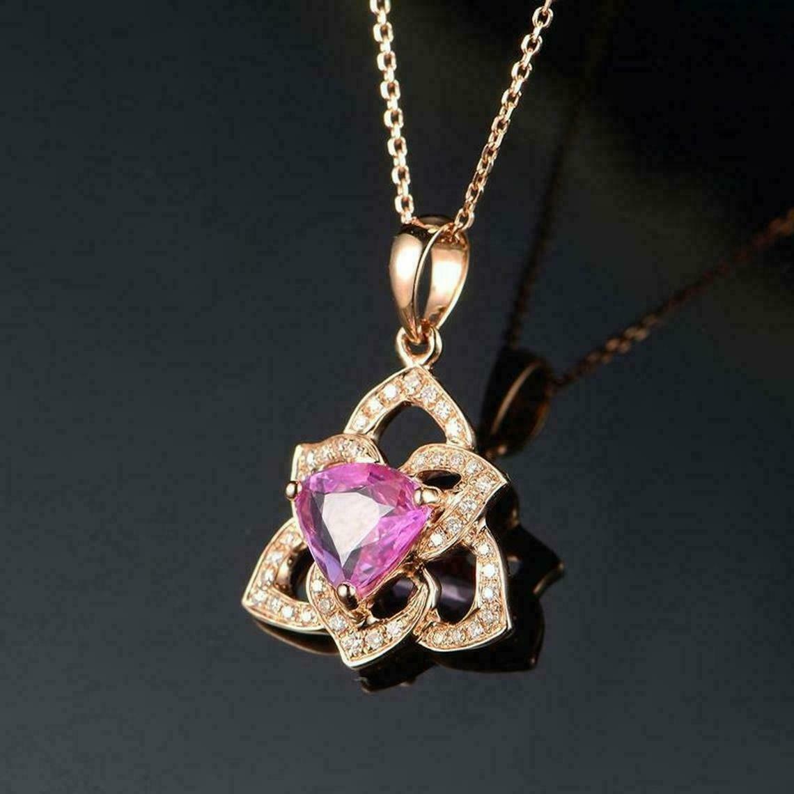 3Ct Trillion Coupe Saphir Pendentif Fleur 18 " Sans Chaîne 14K Finition or Rose