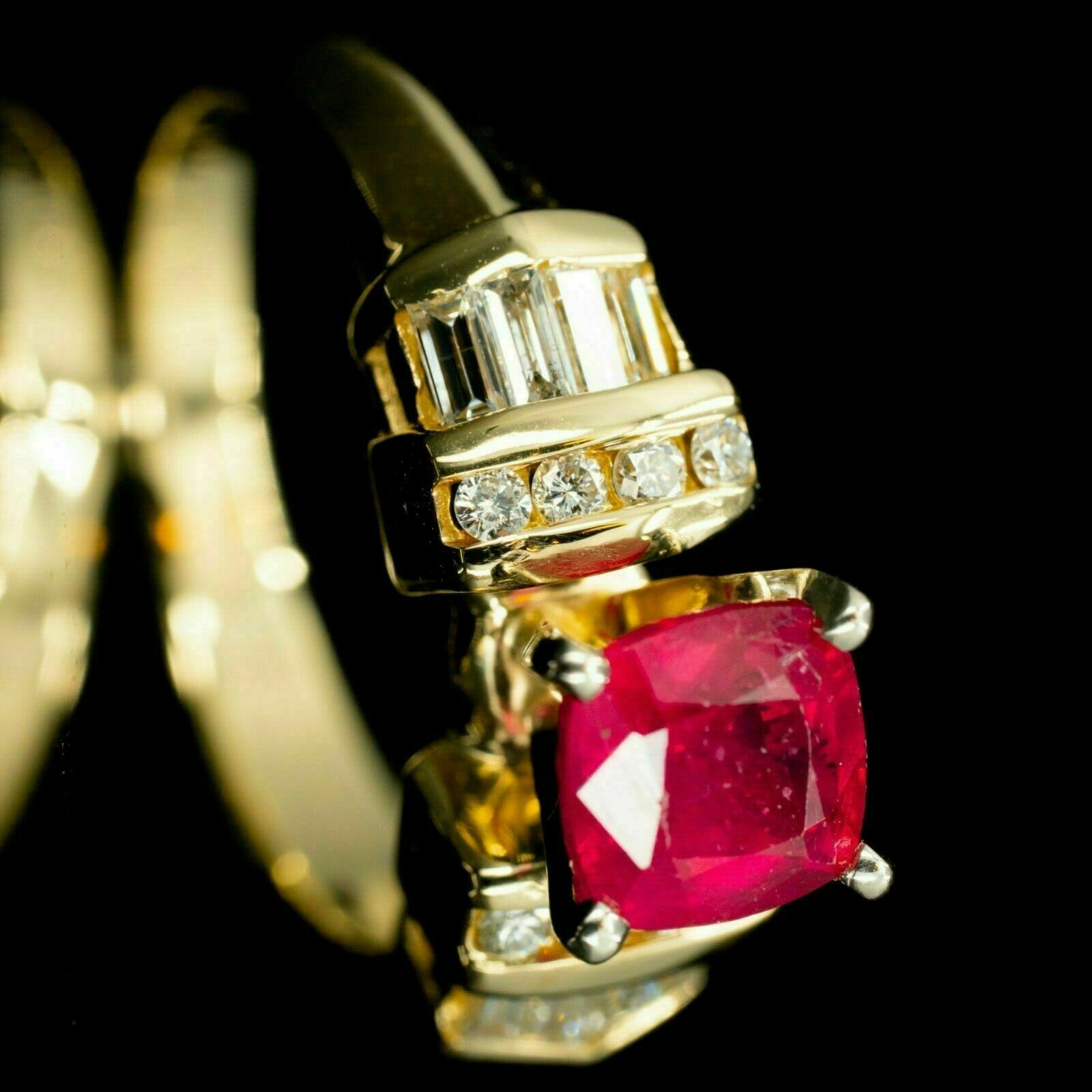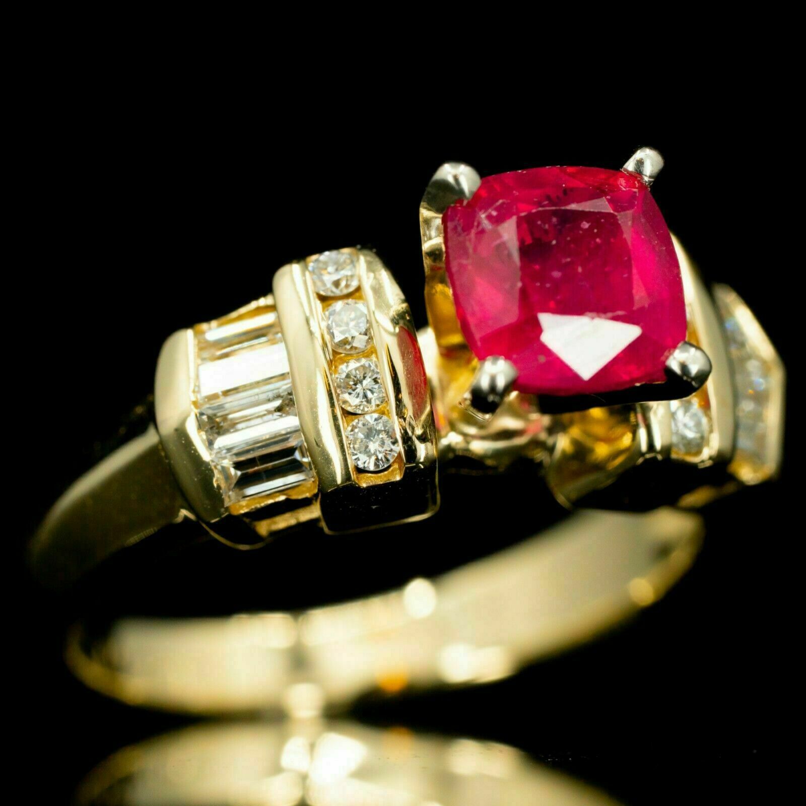 1.50Ct Corte Almohada Rubí Rojo Mujer Único Compromiso Anillo 14K Dorado Sobre