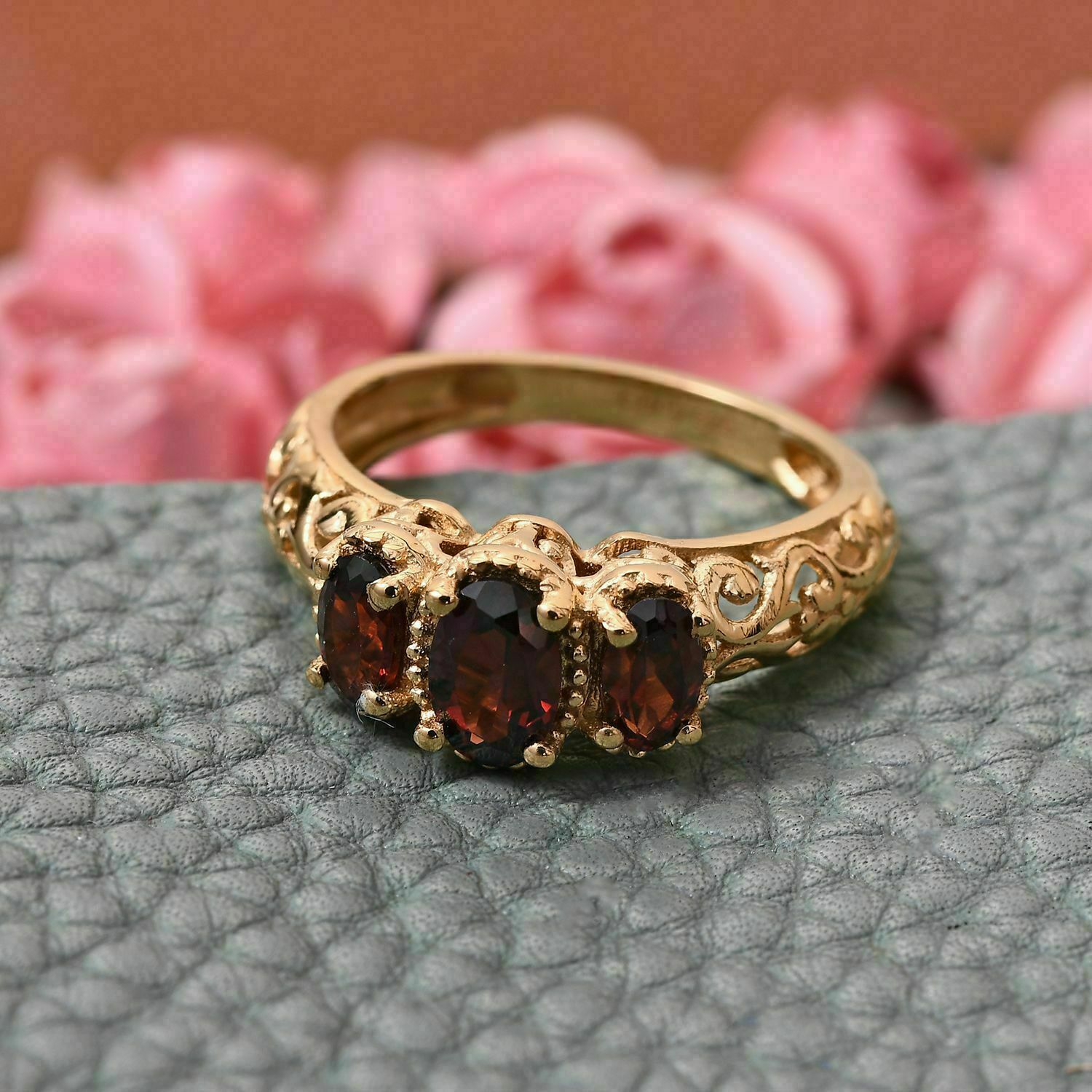 3Ct Taglio Ovale Granato Rosso Stile Vintage Anello Di Fidanzamento IN 14K Oro