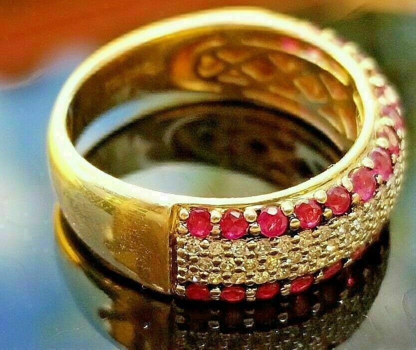 2Ct Coupe Ronde Rouge Rubis & Diamant Mariage Fiançailles Bague 14k or Jaune