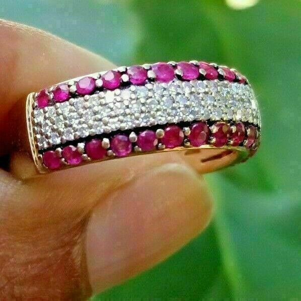 2Ct Coupe Ronde Rouge Rubis Diamant Mariage Fiançailles Bague 14k or Jaune