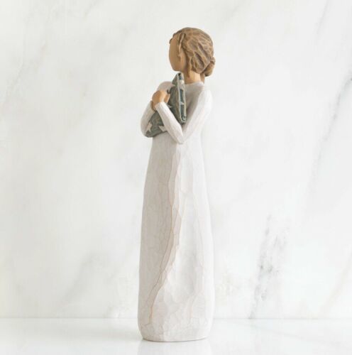 Willow Tree sculptural art forms beautifully express love, closeness, healing, courage, hope… all the emotions of a life well lived. Artist Susan Lordi hand carves the original of each figure from her studio in Kansas City Missouri. Pieces are cast from her original carvings, and individually painted by hand. Expression is revealed through gestures only… a tilt of the head, placement of the hands, a turn of the body. The simplicity of form and absence of facial features signify Willow Tree. It is Susan’s hope that these pieces be meaningful to both giver and receiver.