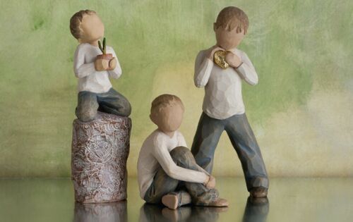 Willow Tree sculptural art forms beautifully express love, closeness, healing, courage, hope… all the emotions of a life well lived. Artist Susan Lordi hand carves the original of each figure from her studio in Kansas City Missouri. Pieces are cast from her original carvings, and individually painted by hand. Expression is revealed through gestures only… a tilt of the head, placement of the hands, a turn of the body. The simplicity of form and absence of facial features signify Willow Tree. It is Susan’s hope that these pieces be meaningful to both giver and receiver.