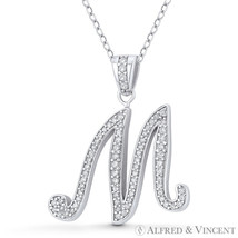 Initial Letter "M" Cursive Script CZ Crystal 925 Sterling Silver Rhodium Pendant