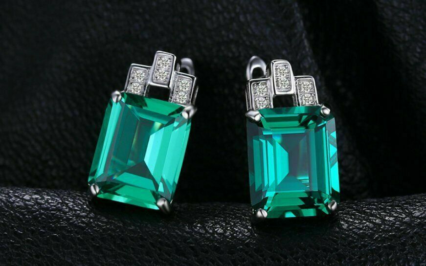 14k Weißgold Finish 3.50Ct Smaragd Schliff Grün Smaragd Diamant Ohrstecker