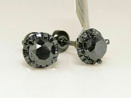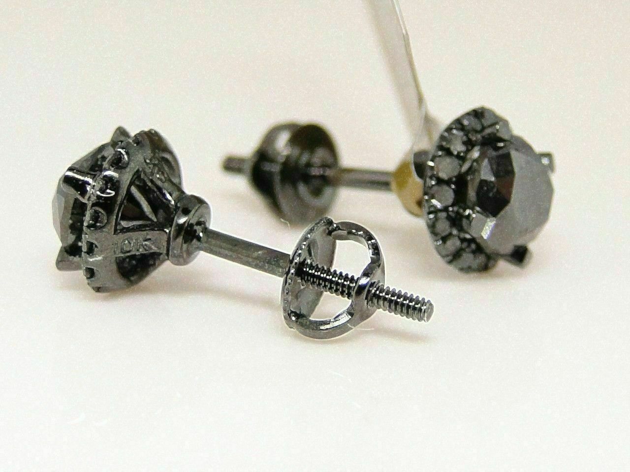 4.20Ct Coupe Ronde Black Diamond Halo Clou Earrings IN 14K or Noir Finition