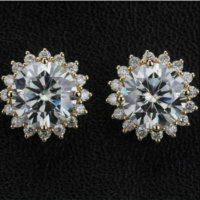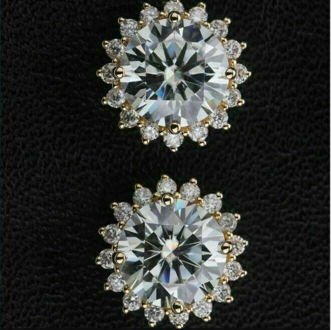 4.20Ct Corte Redondo Moissanita a Presión Halo Dormilonas 14K Oro Amarillo Final