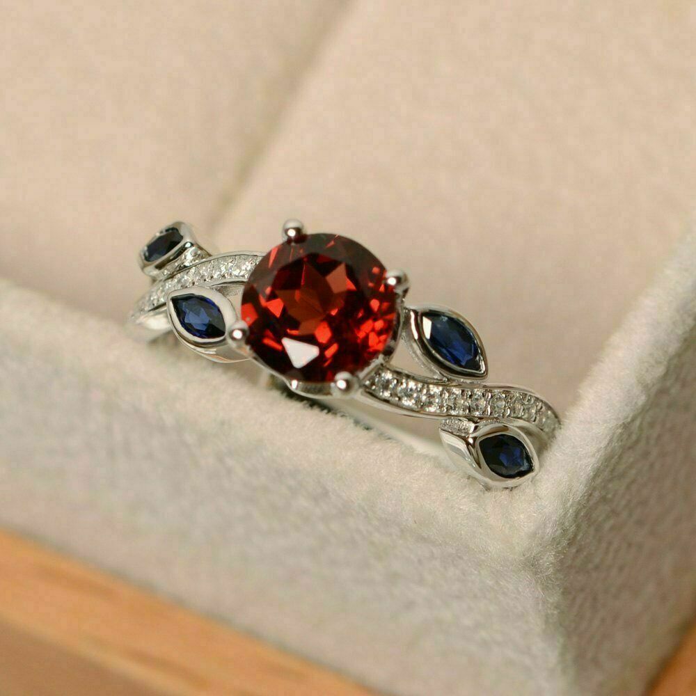 2Ct Corte Redondo Granate Anillo Solitario and similar items