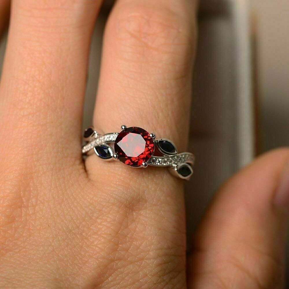 2Ct Corte Redondo Granate Anillo Solitario Diamante de Compromiso 14K Acabado