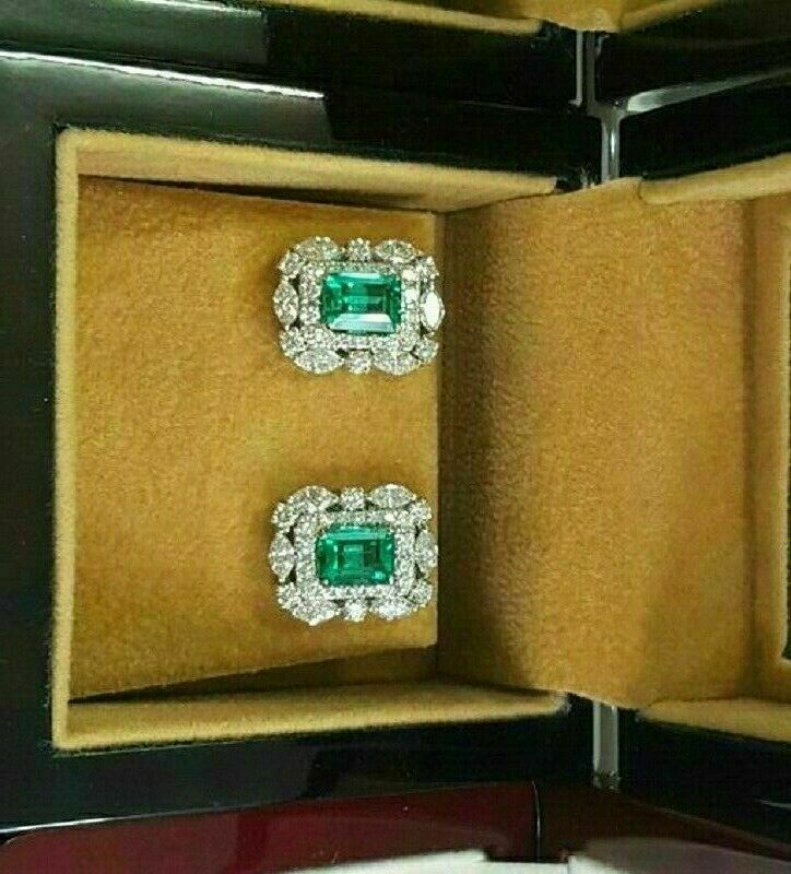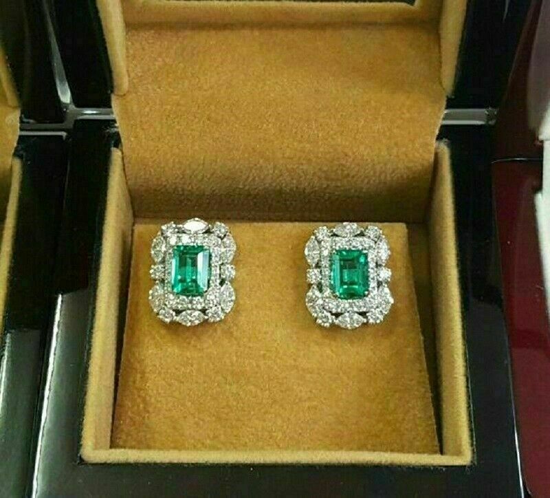 2Ct Smaragd Schnitt Damen Grün Smaragd Halo Ohrstecker 14K Weißgold Finish