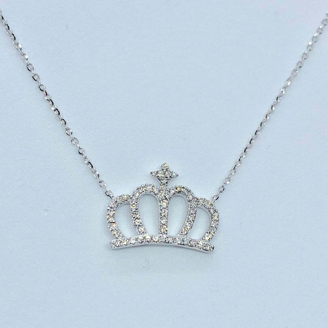1.30Ct Corte Redondo Diamante Corona Forma Colgante 14K Oro Blanco Acabado Libre