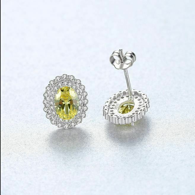 4Ct Ovale Brillante Taglio Giallo Citrino Orecchini Fiori a Perno 14K Oro Bianco