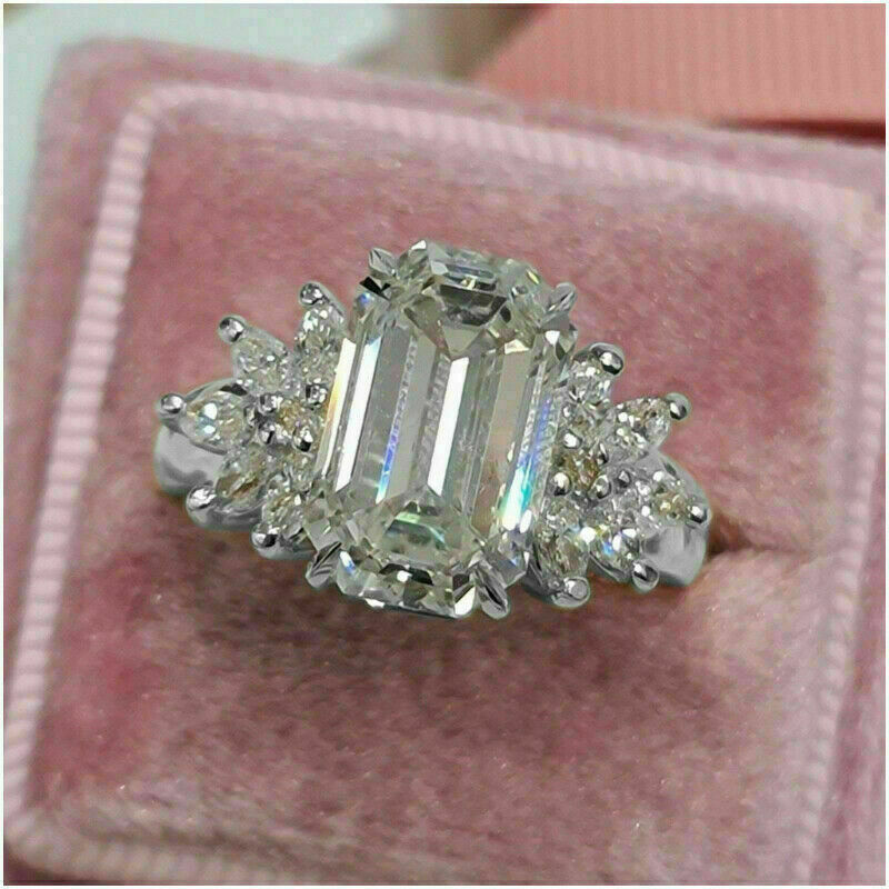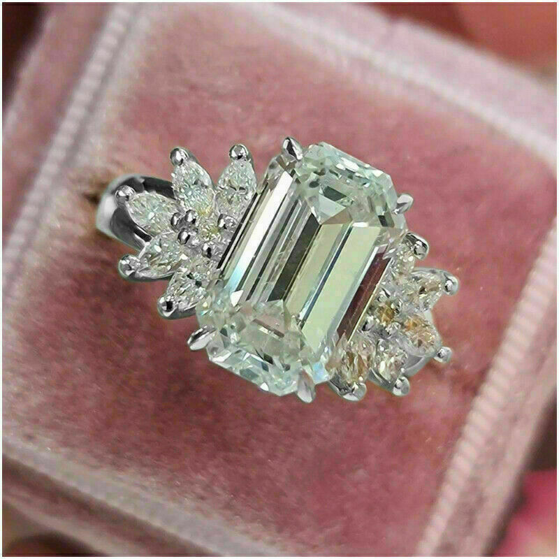 3Ct Smeraldo Taglio Diamante Solitario Donna Fidanzamento Anello 14K Oro Bianco