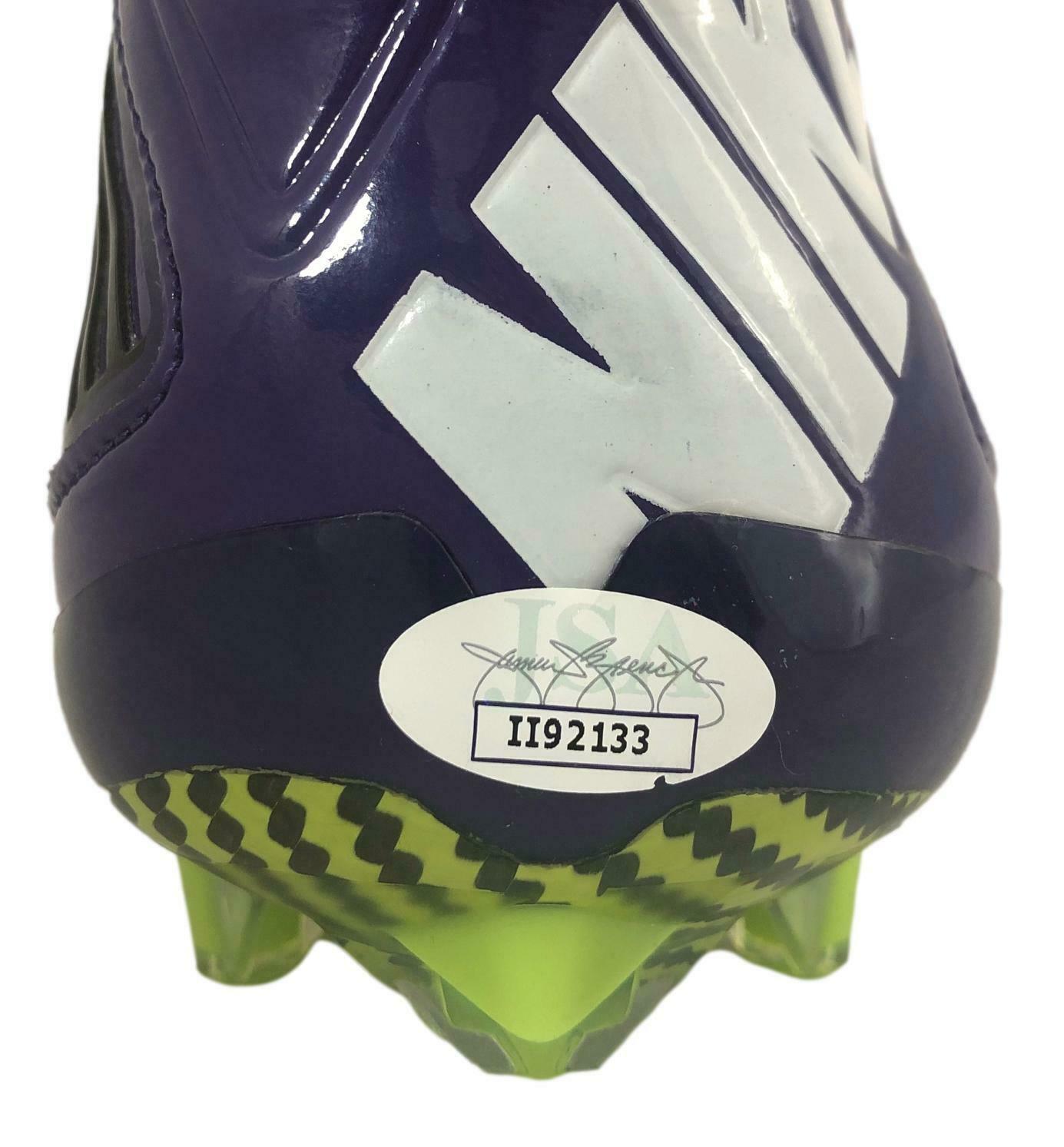 Jacob fans, this is your calling! Check out this Black/Purple Nike Football Cleat size13 signed by Jacob Eason This item is sure to shine in your man cave, office, game room or lady lair! Certificate of Authenticity: The autograph on this item has been certified authentic by James Spence Authentication (JSA), one of the largest amp; most reputable memorabilia companies in the industry. This piece includes the JSA tamper-proof authentication sticker and identification card directly from them, which can also be accessed anytime/anywhere on their online authenticity verification database on their website. This is a stock item, autograph quality may vary as well as the location of the autograph.