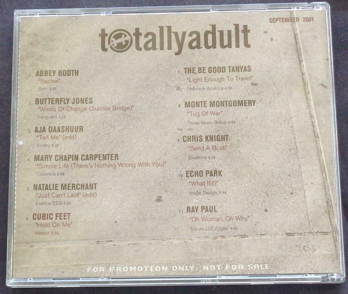 Offered here is this nice gently used CD titled Totally Adult TuneUp #55 – September, 2001. It is in particularly good condition and plays well. It features Abbey Booth and is a compilation cd with many different artists and songs. This is a nice music cd, and a great mix of songs;
