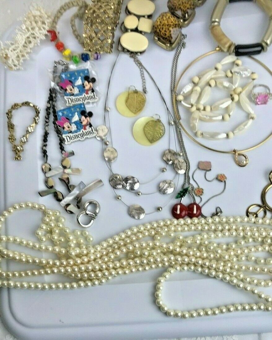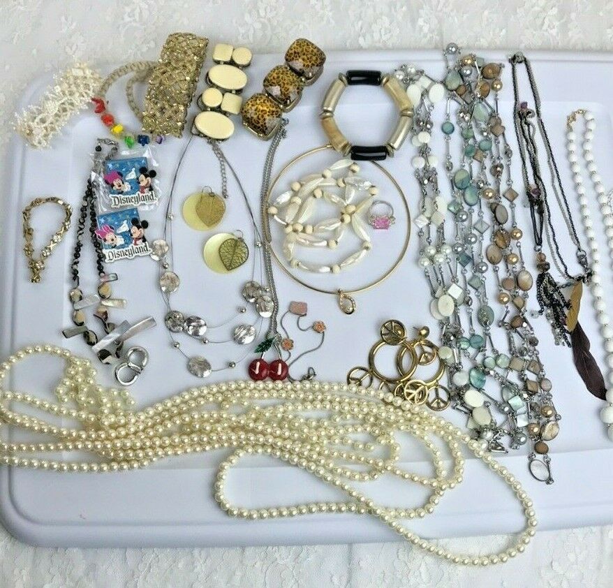 Mixed Jewelry Lot #7 Necklaces, Bracelets, Earrings - This lot includes 30 pieces of jewelry for you to sell, gift, or keep for yourself. Items are packaged to avoid tangles. This lot includes: 1 Ring, 2 Disney Trading Pins, 3 Pairs of Earrings, 11 Bracelets 13 Necklaces. Very Good - Excellent Condition - See Photos for further description.